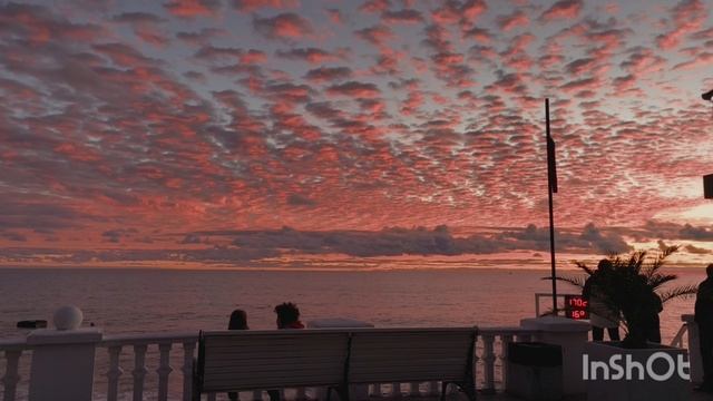 Невероятные ало-золотые с розовым облака сегодня над морем