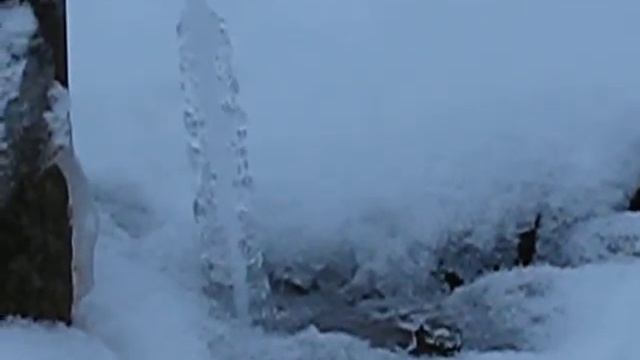 В колонке замерз механизм и вода льётся постоянно! А снизу растет "сталагмит" пустотелый ледяной и вода продолжает в нем течь. Видимо он дорастет до самого крана. Если оттепель его не убъет