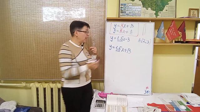 Задайте формулой линейную функцию, графиком которой служит прямая , проходящая через точку А(2;3) и параллельная графику функции y=1,5x-3