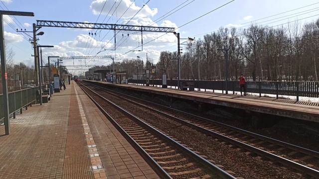 Двухэтажный поезд Аэроэкспресс Шереметьево D проезжает станцию D1 МЦД Водники|Московский транспорт