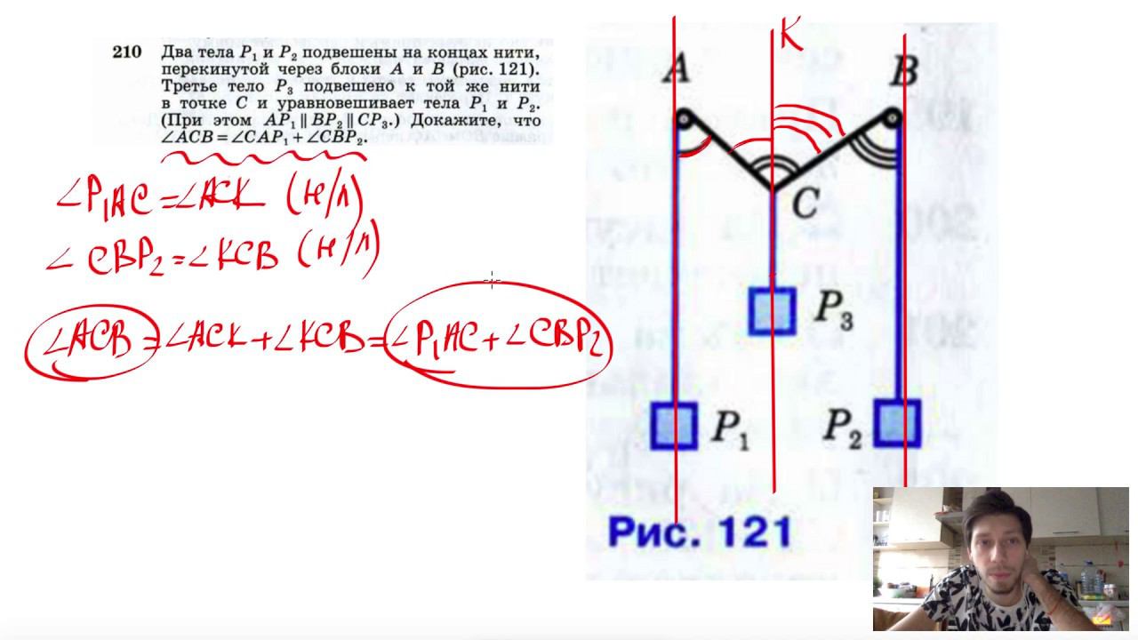 №210. Два тела Р1 и Р2 подвешены на концах нити, перекинутой через блоки А и В (рис. 119). Третье тело Р3 подвешено на той же нити в точке С и уравновешивает тела Р1 и Р2. (При этом АР1||BР2||СР3.) Докажите, что ∠ACB = ∠CAP1+∠CBP2. Поддержать канал рублём - 5469400944002125 (Сбербанк) Мой второй канал для подготовки к ЕГЭ и ОГЭ - https://www.youtube.com/ЕвгенийСумин Инстаграм - https://www.instagram.com/EGE_OGE.math Личный инстаграм - https://www.instagram.com/ee_sumin VK - https://vk.com/evgeniysumin FB - https://www.facebook.com/EvgeniySumin