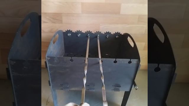https://vk.com/mangal78 Мангал с двойным дном и механизмом вращения. Крутите один шампур, вращаются все. Сталь 2мм. Вес 11кг Длина 41см Ширина 31см Высота 43см Глубина 15,5см Разборный