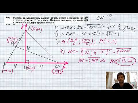 №955. Высота треугольника, равная 10 см, делит основание на два отрезка, равные 10 см и 4 см. Найдите медиану, проведенную к меньшей из двух других сторон. Мой второй канал для подготовки к ЕГЭ и ОГЭ - https://www.youtube.com/ЕвгенийСумин TikTok - https://vm.tiktok.com/WJJwK9 Like - https://likee.com/user/@ge0metriya Инстаграм - https://www.instagram.com/EGE_OGE.math Личный инстаграм - https://www.instagram.com/ee_sumin VK - https://vk.com/evgeniysumin FB - https://www.facebook.com/EvgeniySumin