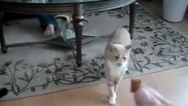 Кот, который ловит еду лапами