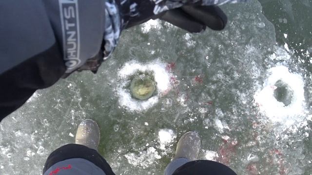 клев щуки на балансир #щука #окунь #лед #пруд #зимой