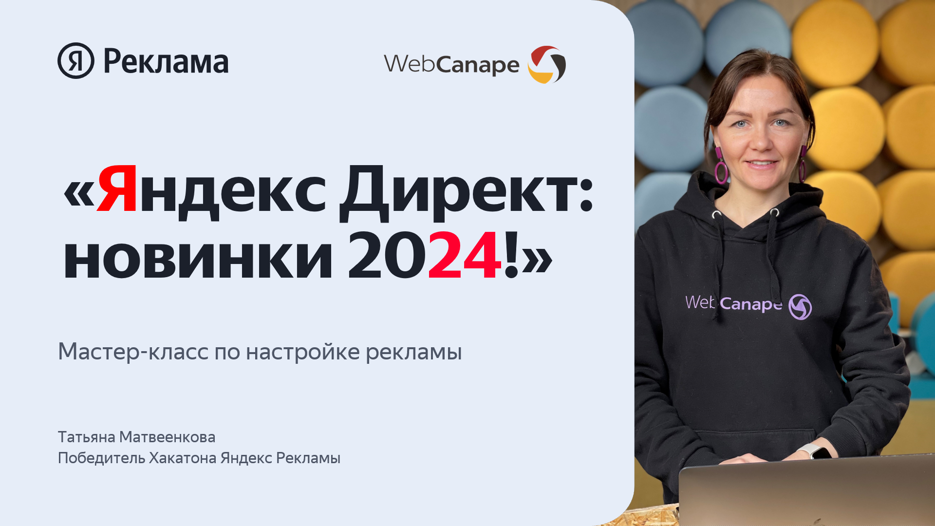 На вебинаре Татьяна расскажет какие инструменты Яндекс Директа надо применять уже сейчас, чтобы увеличить ваши бизнес-показатели в 2024 году. Что еще узнаете на вебинаре: ⚡Какие новинки появились в Яндекс Директе за 2023 год ⚡Как использовать обновления для достижения KPI ⚡Что по нашему опыту реально работает на результат Для кого: ✔️ Собственники бизнеса ✔️ Руководители ✔️ Предприниматели ✔️ Маркетологи ✏️ Подписывайтесь на «Сомелье маркетинга» https://t.me/WebCanapeChannel 00:00 Начало вебинара 00:43 Новинки Яндекс Директ 2024 04:37 Как работает пакетная стратегия 14:10 Особенности единой перфоманс компании 19:40 Минимальный бюджет — что такое и зачем нужен 27:45 Как настроить автотаргетинг на поиске 35:16 Чек-лист по настройке автотаргетинга 43:37 Как работает автоматическая модель атрибуции 47:46 Расширение списка интересов и привычек ЦА 50:41 Объявления в товарной галерее 51:53 Изображения от нейросетей в Яндекс Директ 55:14 Дополнительные списки минус-слов 56:48 Промоакции на уровне групп 58:18 Подводим итоги 01:00:00 Бонусы и подарки