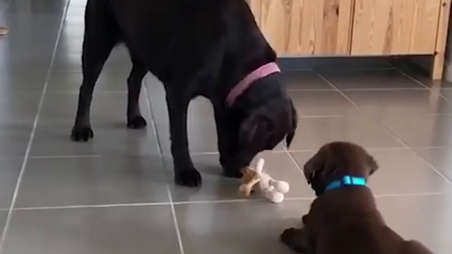 Пёс поделился своей игрушкой с маленьким щенком. #собаки #милота #игрушка