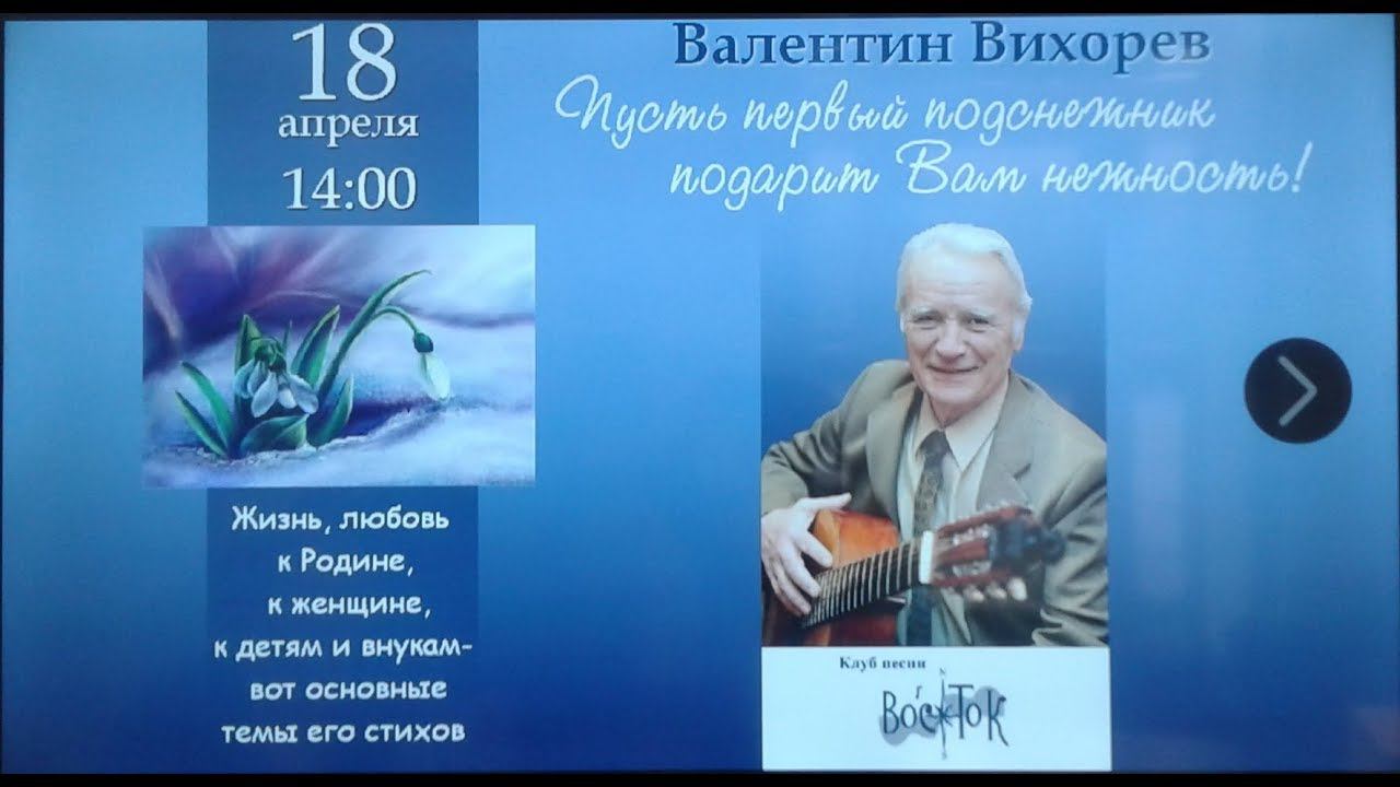 Валентин Вихорев. Выступление в Комплексном центре социального обслуживания населения Московского района. Санкт-Петербург, Московское шоссе, 16, корпус 1. 18 апреля 2018 г. Запись Аллы Левитан.