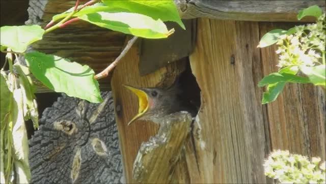 Прожорливые птенцы в скворечнике.