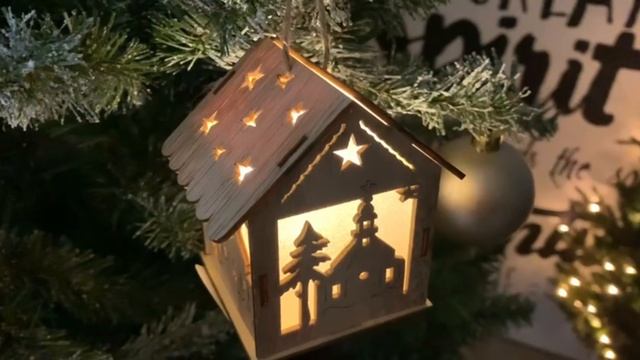 Светящаяся елочная игрушка ВОЛШЕБНАЯ ИЗБУШКА С ЦЕРКВЯМИ, дерево, 9 см, на батарейках, ANM500030-4