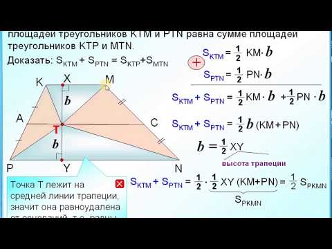 На средней линии AC трапеции PKMN с основанием KM и PN выбрали произвольную точку T. Докажите, что сумма площадей треугольников KTM и PTN равна сумме площадей треугольников KTP и MTN.