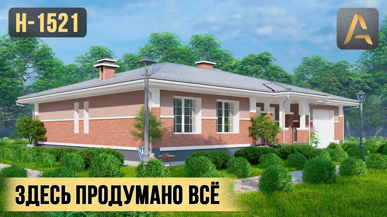 Один из самых удобных одноэтажных домов. Проект дома с гаражом, сауной и великолепной террасой