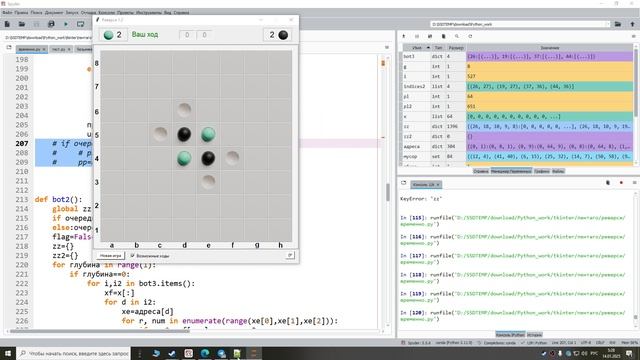 Количество комбинаций в игре Реверси на разных уровнях глубины от начальной позиции