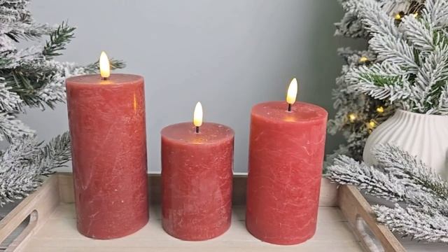 Набор светодиодных восковых свечей АТМА, красный, 'натуральный фитилёк', 10-15 см, 3 шт., AX5441230