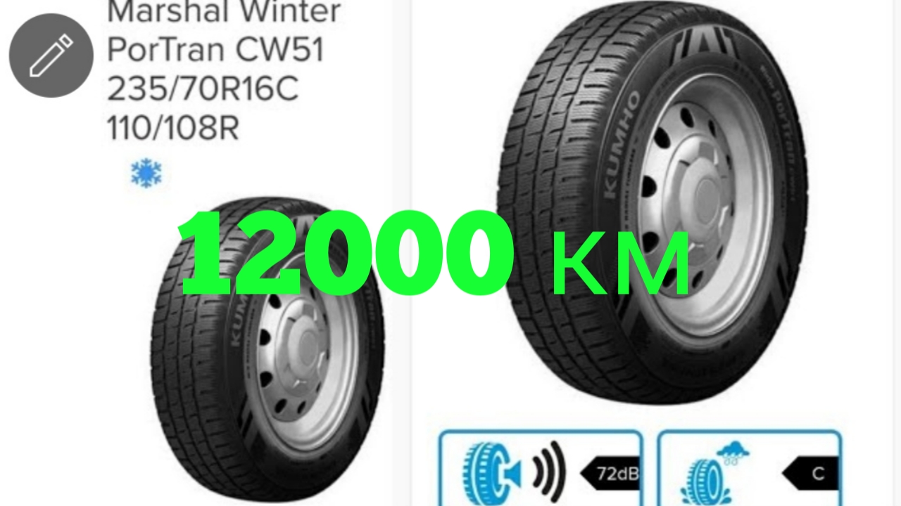Отзыв. Шины Marshal Winter PorTran CW51 235/70R16C 110/108R 12.000 км на нестандартном размере.
