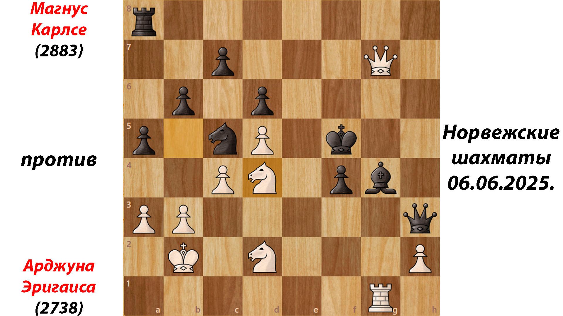 Магнус Карлсен против Арджуна Эригаиса. Норвежские шахматы 06.06.2025.