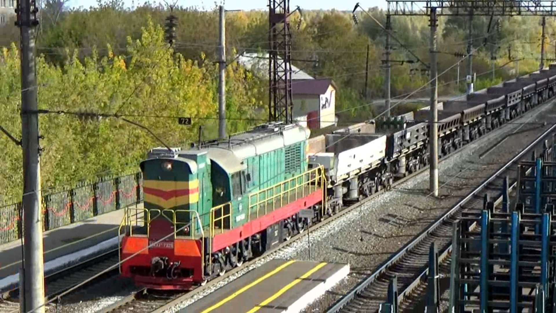 Маневровый ЧМЭ3т-7329 с думпкарами. Станция Навашино.