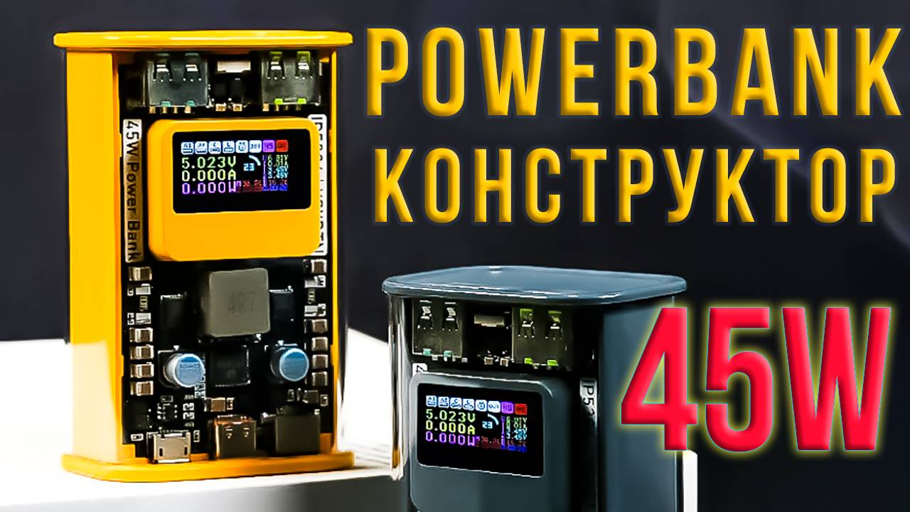 Сборка мощного 45W повербанка - конструктора всего на двух 21700 аккумуляторах с цветным дисплеем