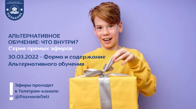 Альтернативное обучение: что внутри? 2022.03.30 - Прямой эфир Форма и содержание Альтернативного обучения Эфиры проходят в нашем Телеграм-канале: https://t.me/PoznanieDeti