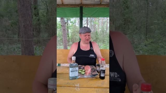 Морской окунь на мангале в лесу с голубым Джином Барри