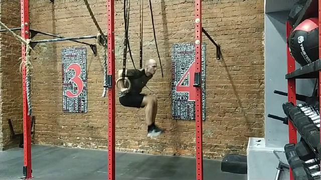 Отжимания на кольцах киппингом