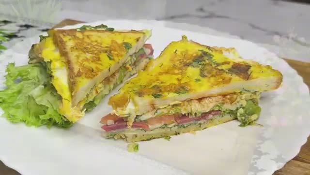 Сэндвич в омлете за 5 минут! Вкусно, быстро и просто 🥪