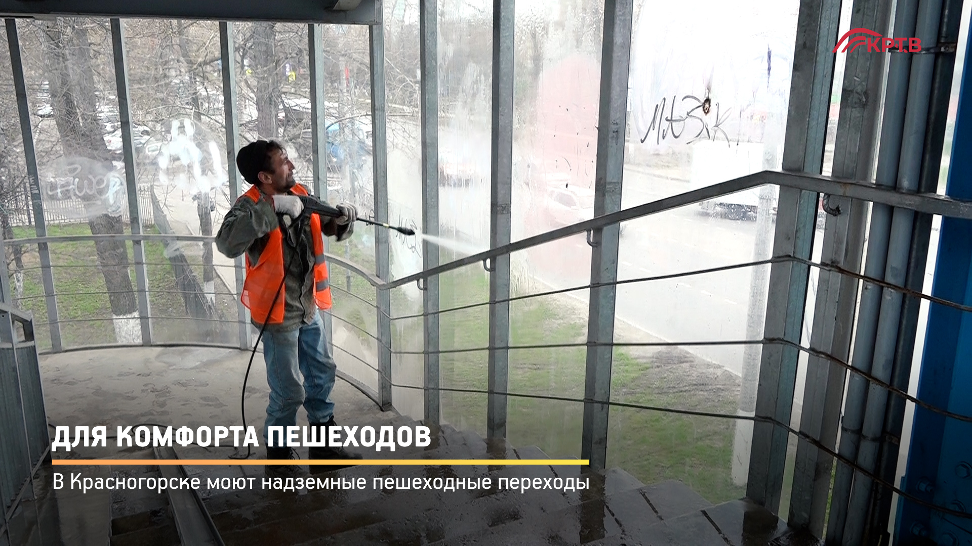 По поручению главы Красногорска Дмитрия Владимировича Волкова коммунальщики приступили к помывке крытых надземных пешеходных переходов. В округе их три – два на Ильинском и один на Волоколамском шоссе.