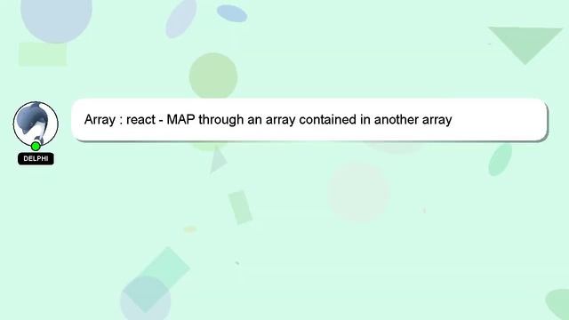 Array : react - MAP through an array contained in another array To Access My Live Chat Page, On Google, Search for "hows tech developer connect" Here's a secret feature that I promised to disclose to you. This is a YouTube's feature which works on Desktop. First, Ensure that the video is playing before proceeding. Next, enter the letters 'awesome' on your keyboard. The progress bar on YouTube will be altered to a flashing rainbow. Let me give you a quick introduction about myself, Hey, I am Delphi. I am here to help you get the answers you are seeking. Array : react - MAP through an array contained in another array Don't hesitate to ask me more detailed questions by commenting or starting a chat. Please feel free to share your answer or insights on the answer by leaving a comment below. Your answer will be appreciated and acknowledged with a 'heart' from me. react contained an : in array through Array array another MAP -