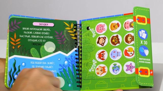 "ИЗУЧАЕМ ЦВЕТА И ФОРМЫ - это набор познавательных задачек для малышей, дающих первые представления об основных цветах и фигурах в увлекательной игровой форме. В комплект входит 6 игровых элементов в виде геометрических фигур разных цветов с креплениями - липучками и 18 заданий с их участием. Благодаря липучкам, фигуры легко и надежно фиксируются к поверхности карточек и также легко снимаются, обеспечивая многоразовое использование." "Изучаем животный мир"" - это набор познавательных красочных заданий для малышей, рассказывающий о мире животных в увлекательной игровой форме. В комплект входит 12 многоразовых фишек-стикеров с изображениями жителей леса, тропиков, фермы, подводного мира и 30 разнообразных заданий с их участием. Малыша обязательно увлечет поиск подходящих фишек к задачкам- вопросам: Кто где живет и что ест ? Какие издает звуки? Кто чей сосед ? а также к тематическим ребусам, домино и загадкам. Фишки не имеют магнитной или клеевой основы, но легко и надежно крепятся к игровому полю. Многоразовое использование поможет попробовать различные варианты, тренируя логику и смекалку!"