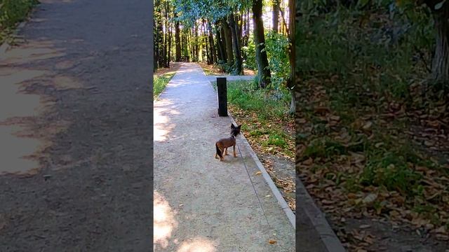 Эля в парке. Эле 12 лет, голая китайская хохлатая собака.