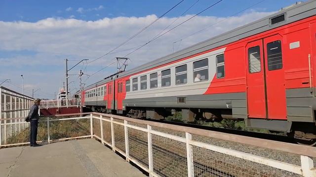 Электропоезд ЭД2Т-0025 с пригородным поездом №6256 Челябинск-Главный — Каменск-Уральский отправляется с О.п. 2109 км, г. Челябинск, Челябинская обл., ЮУЖД Дата: 03.06.2022