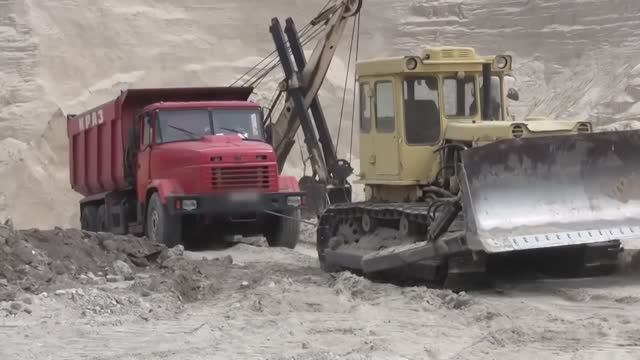 Камазы, Уралы, Кразы, Татры, бульдозеры работают на бездорожье