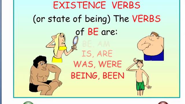 EXISTENCE VERBS or LINKING VERBS. Common Core Literacy. The VERBS of "BE" are: "BE, AM, IS, ARE, WAS, WERE, BEING, BEEN. Enhance your writing and speaking skills by learning the proper use of EXISTENCE VERBS. Learn to diagram sentences for greater understanding of English grammar. For FREE grammar games and practice quizzes www.easyEnglishgrammar.org www.Englishgrammarhelp.com