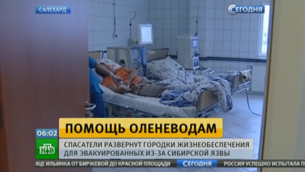 На Ямале, где впервые почти за 80 лет зафиксирована вспышка сибирской язвы, спасатели развернут городки обеспечения для оленеводов, эвакуированных из отдаленных районов. Накануне в больнице, предположительно, от сибирской язвы умер 12-летний мальчик. Госпитализированы еще 72 человека, у восьмерых диагноз уже подтвердился. Поскольку ситуация для Ямала экстраординарная, лабораторные исследования там проводились долго — почти неделю. Сейчас, с приездом инфекционистов из Москвы, возможно, диагностика станет более быстрой. Источник: http://www.ntv.ru/novosti/1647260)