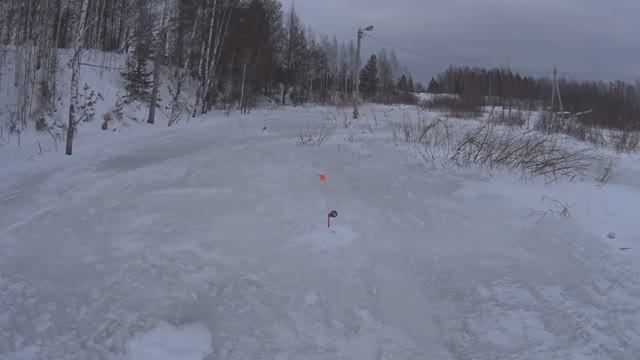 Выезжаем на новый водоём ловить хищника на живца. Погода совсем не радует, морозы и сильный западный ветер. Всё же удалось поймать несколько мелких щучек))).