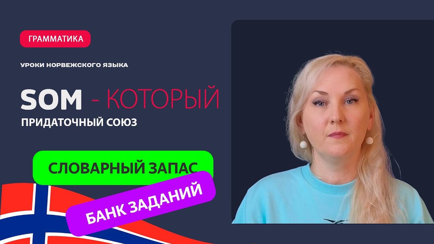 Союз "som" отличается от остальных придаточных союзов норвежского языка. Поэтому я посвятила ему отдельное видео, где собрала все основные правила, которые нужно помнить при работе с этим союзом. 🔥 Курс по увеличению словарного запаса Информация о курсе по увеличению словарного запаса по методу интервальных повторений https://t.me/svetlana_list_norsk/419 https://t.me/svetlana_list_norsk/420 🔥 Курс грамматики норвежского языка «Аудиорепетитор». Старт в феврале. Информация о курсе и тарифы https://t.me/svetlana_list_norsk/524 Программа курса https://t.me/svetlana_list_norsk/535 🔥 Марафон «Разговорная практика» https://t.me/svetlana_list_norsk/358