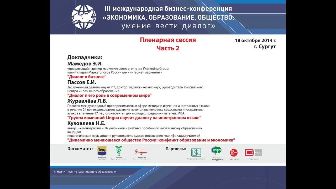 Лингва. Конференция в Сургуте. Пленарная сессия. Часть 2