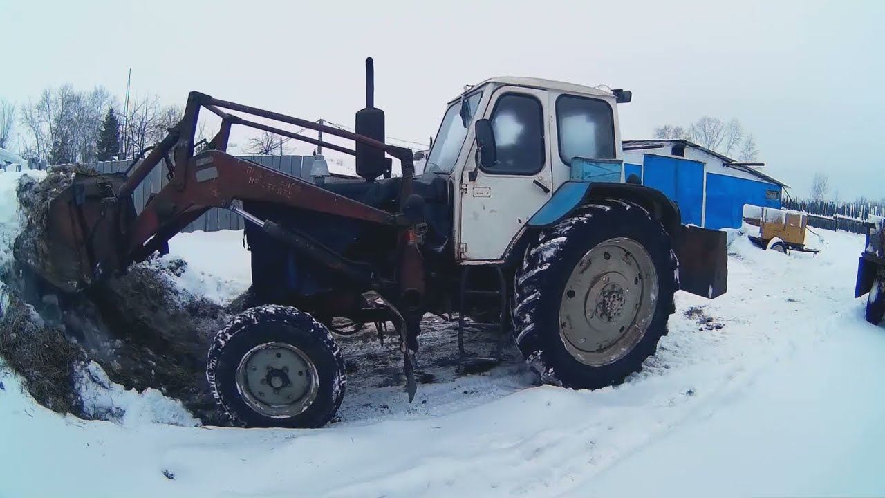 ЮМЗ-6 расчистка навоза. Зачем вытаскиваю рулоны из середины сеновала? Идём в глубь сеновала.