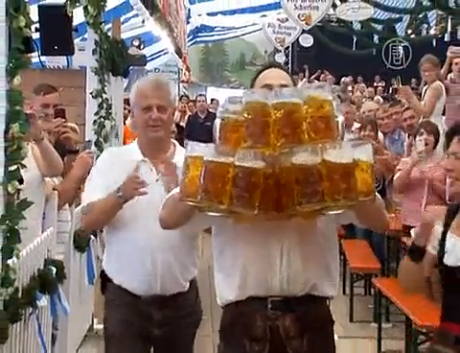 Рекорд: немец перенес 27 кружек с пивом за один раз