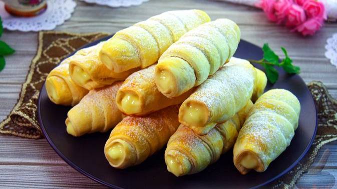 Зачастую в качестве начинки для трубочек используется белковый крем, однако с заварным кремом вкус получается более нежным. Использование слоёного теста значительно упрощает процесс приготовления. #Трубочки #ТрубочкиСКремом #ТрубочкиСЗаварнымКремом #СлоёныеТрубочки