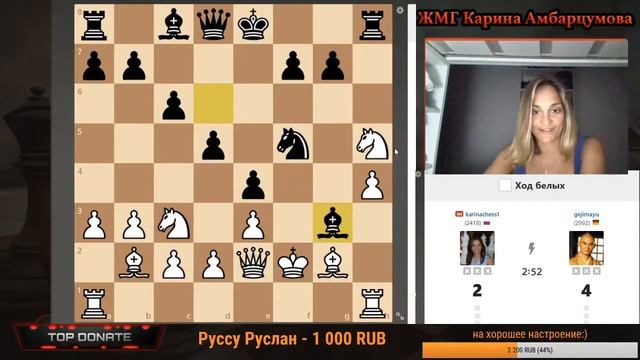 Поддержать канал: https://www.donationalerts.com/r/karinachess1 Подписаться на мой канал: https://www.youtube.com/channel/UChor8u_hhgrjX2lt0QLzZHA?sub_confirmation=1 Информация о вебинаре и запись: https://vk.com/karinachessclub?w=wall-195780945_31 Рестрим: https://www.twitch.tv/karinachess1 Рада приветствовать Вас на канале женского международного гроссмейстера, международного мастера Карины Амбарцумовой! Я - профессиональная шахматистка и тренер. Здесь вы сможете найти обучающие видеоуроки по шахматам, комментарии турниров, стримы моей игры в блиц шахматы. Подписывайтесь на мои странички в соц.сетях: ВКонтакте: https://vk.com/karinachessclub Twitch: https://www.twitch.tv/karinachess1 Почта для связи: karinachess@mail.ru Поддержать канал: https://www.donationalerts.com/r/karinachess1 Мой сайт: http://chesscoach.ru/