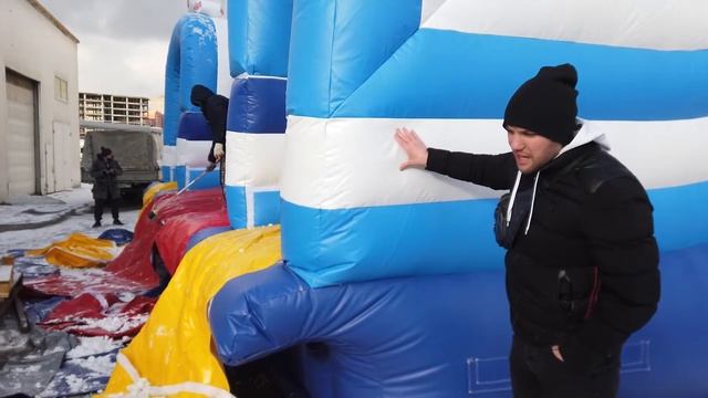 Обзор. Большой надувной коммерческий батут «Йети». Зимний батут для бизнеса. Зимняя горка.