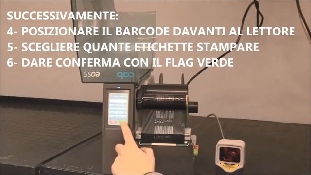Lettura etichetta contenente barcode, tramite lettore monodimensionale da banco collegato a stampante CAB SQUIX, e successiva stampa delle etichette replicando il barcode stesso.