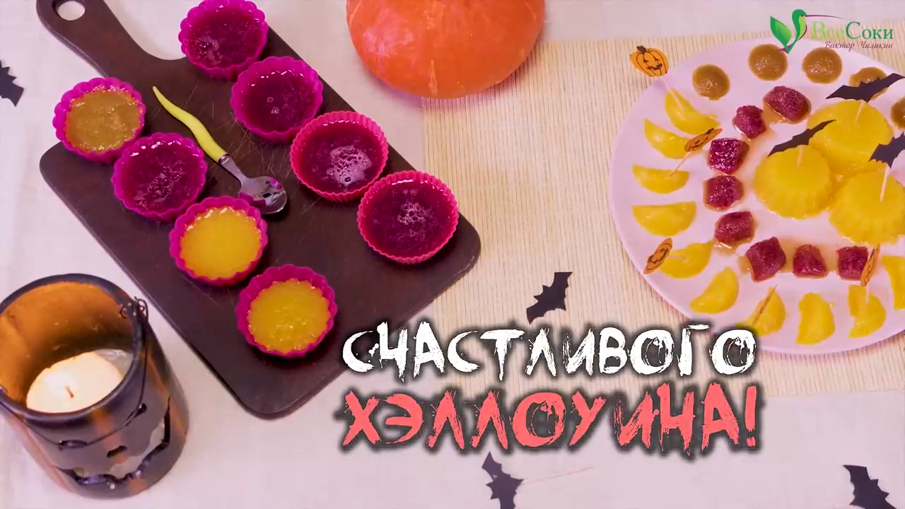 Хэллоуин – современный международный праздник, восходящий к традициям древних кельтов. Его история началась на территории современных Великобритании и Северной Ирландии. Большинство символов праздника имеет долгую историю: например, традиция изготовления тыкв-светильников пошла от кельтского обычая создавать фонари, помогающие душам найти путь в чистилище. В Шотландии в качестве символа Хэллоуина выступала репа, но в Северной Америке её быстро заменила тыква, как более дешёвый и доступный овощ. Приступая к декору десертов в «страшном» стиле Хэллоуина, следует отдавать предпочтение тем, что делаются проще всего. Как раз такой рецепт сладостей на Хэллоуин мы и подготовили для Вас в этом ролике. Сегодня мы приготовим полезный веганский мармелад на основе натуральных соков и агар-агара. Для этого нам понадобятся: - Яблоки – 500 г; - Тёмный виноград – 500 г; - Апельсины – 500 г; - Агар-агар – 3 ч. л.; - Тростниковый сахар – 3 ч. л. Свежевыжатый сок – основа мармелада. В очистке фруктов нам помогли замечательные кухонные гаджеты компании Konstar – http://vsesoki.ru/collection/konstar?rtube Для приготовления основы мы использовали корейскую вертикальную шнековую соковыжималку 4-го поколения Hurom H-100 чёрного цвета. Соки получились отличные! Видеоролик от 02.11.2018 Рекомендуем ознакомиться с видеороликом и попробовать сделать их самостоятельно: 1. Тщательно вымойте фрукты; 2. Отделите грозди винограда от стебля, с помощью ломтерезки Konstar KS-196 разделите яблоки на дольки, очистите апельсины с помощью овощечистки Konstar KS-217; 3. Поместите рычаг перекрытия выхода жмыха в положение CLOSE / «ЗАКРЫТО (●)», отожмите сок из продуктов; 4. Когда Вы отожмёте сок из последнего ингредиента, поставьте рычаг в положение «ОТКРЫТЬ НАПОЛОВИНУ (◑)», чтобы выпустить жмых; 5. Смешайте 200 мл виноградного сока, 1 ч. л. агар-агара и, по желанию, 1 ч. л. тростникового сахара; 6. Подогрейте смесь в сотейнике и кипятите в течение 2-х минут; 7. Разлейте по формам и оставьте на полчаса при комнатной температуре для застывания; 8. Повторите с яблочным и апельсиновым соками; 9. Разложите получившиеся конфеты на лотках и отправьте их в дегидратор L'equip IR D5; 10. Время сушки при температуре 40 °С составит 4-6 часов; 11. Украсьте вегатарианские мармеладки тематическими шпажками и угощайте друзей! Hurom Alpha H-100, чёрный: http://vsesoki.ru/collection/sokovyzhimalki-HUROM/product/sokovyzhimalka-hurom-h-100-4-pokolenie-chyornyy?rtube Hurom Alpha H-100, титан: http://vsesoki.ru/collection/sokovyzhimalki-HUROM/product/sokovyzhimalka-hurom-h-100-4-pokolenie-titanoviy?rtube Hurom Alpha H-100, бордовый: http://vsesoki.ru/collection/sokovyzhimalki-HUROM/product/sokovyzhimalka-hurom-h-100-4-pokolenie-vinnyy-krasnyy?rtube Инфракрасный дегидратор L'equip IR D5: http://vsesoki.ru/product/infrakrasnyy-degidrator-ir-d5?rtube Ломтерезка 2 в 1 (яблокорезка) Konstar KS-196: http://vsesoki.ru/collection/konstar/product/yablokorezka-konstar?rtube Многофункциональная овощечистка Konstar KS-217: http://vsesoki.ru/collection/konstar/product/mnogofunktsionalnaya-ovoschechistka-konstar-ks-217?rtube http://vsesoki.ru?rtube – ООО «Все Соки», официальный импортёр и российский дистрибьютор техники Hurom, L'equip, кухонных гаджетов Konstar и других лидеров в производстве техники для здоровья. ☎ Заказать шнековые соковыжималки, надёжные дегидраторы (сушилки для фруктов и овощей), кухонные аксессуары, домашние мельницы, стационарные блендеры, эффективные проращиватели и другую технику для здорового питания с бесплатной доставкой по РФ: +7 (495) 134-11-44 – в Москве +7 (812) 389-33-66 – в Санкт-Петербурге ⠀8 (800) 33-33-627 – по всей России (звонок бесплатный!) Сюрприз для подписчиков! Подпишитесь на на