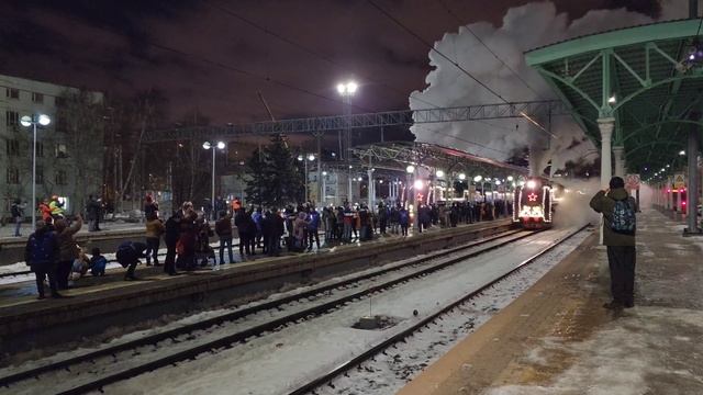25 декабря 2022 года в 19:33 Станция Москва-Смоленская Московская железная дорога Невероятная праздничная атмосфера царила на платформе, огромное количество людей приехало посмотреть на это чудо - паровозы в работе! Ближний поезд на паровозах П36-0120 и П36-0147 Дальний поезд на паровозе П36-0031