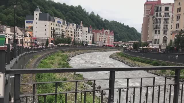 Роза Хутор - Роза Долина на высоте 560 м / Ратуша, красивые виды, бурлящая река