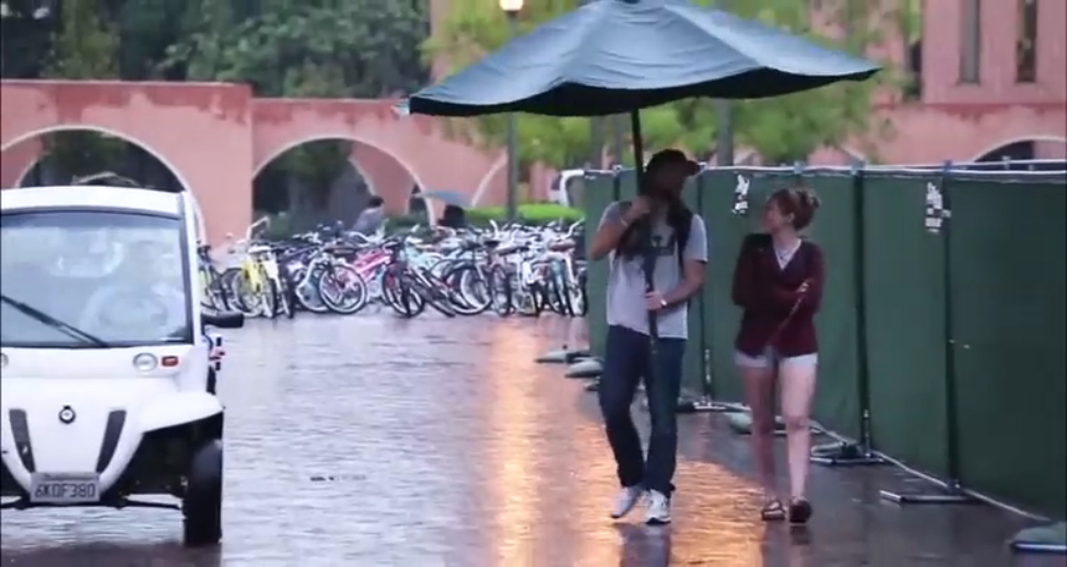 Парень во время дождя с большим зонтом укрывает прохожих. #прикол #дождь #зонт