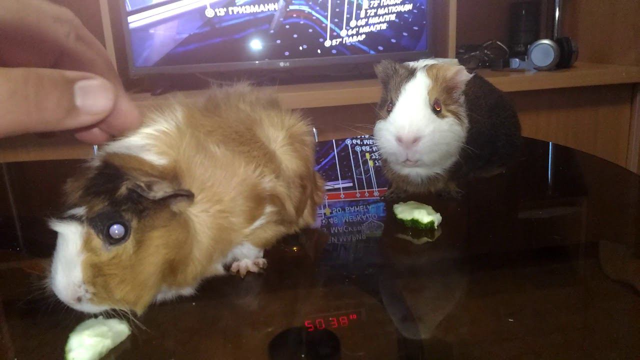 Морские свинки едят огурец. Под Чемпионат мира по футболу Guinea pigs eat cucumber.