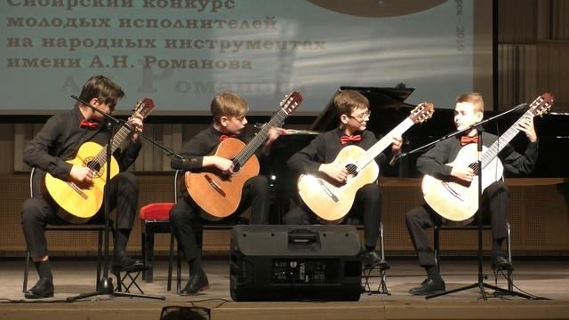 Ансамбль гитаристов "Рондо" Новосибирск. Итальянский танец "Тарантелла" (Трапезников Никита, Абаимов Иван, Рашкуев Ярослав, Биркин Даниил. ГШИ №29 г.Новосибирск, руководитель Обиденко А.К. Концерт 16.04.19 победителей Межрегиональный Сибирского конкурса молодых исполнителей на народных инструментах имени А.Н. Романова.