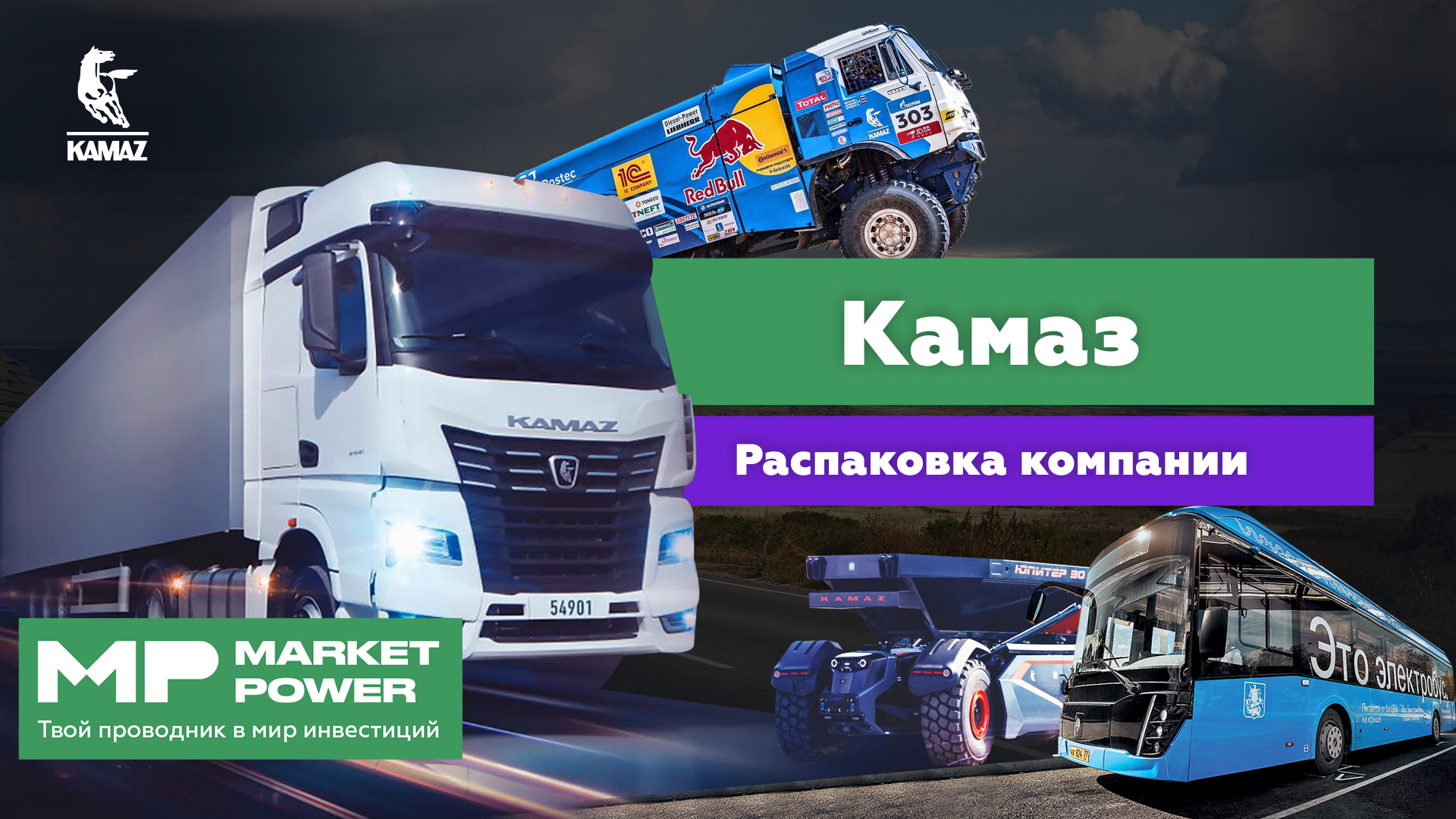 КАМАЗ – крупнейший производитель грузовых автомобилей в России: каждые 10 минут с его конвейера сходит новенький грузовик. Кроме того, дочерние подразделения КАМАЗа производят автобусы, спецтехнику и запчасти для своих автомобилей. 90% выручки КАМАЗ получает от продаж грузовиков, автобусов и запчастей в России, остальное – от экспорта, в основном – в Казахстан и Узбекистан. Однако, несмотря на явные конкурентные преимущества, инвестору следует знать, насколько грузовики КАМАЗа зависимы от импортных запчастей, а также задаться вопросом, смогут ли они выдержать конкуренцию с китайскими грузовыми автомобилями. Еще из этого видео ты узнаешь: 1:28 – историю КАМАЗа 1:53 – конкурентные преимущества 2:33 – риски компании 3:06 – что будет с акциями КАМАЗа Market Power – это непредвзятый обзор самых волнующих новостей и полезная информация об инвестициях и инвестиционных фондах, о бирже и акциях, о неожиданных взлетах и падениях котировок. Информационный партнер: https://t.me/bankirosru Проекты Market Power: http://promo.marketpower.net/ Купить комикс Market Power: https://promo.marketpower.net/shop Информацию для выпуска подготовили: Илья Иванов, Алексей Тюрин, Юлия Карягина, Михаил Яранов. Продакшн ФОРК: https://www.thefourk.ru/ Купить комикс Market Power: – на Яндекс Маркет: https://bit.ly/3OiYpmj – на Wildberries: https://bit.ly/3Uq3kVw – На Ozon: https://bit.ly/3C23nzB Почта для предложений: info@marketpower.net Дисклеймер Данное видео демонстрируется исключительно в информационных целях и не является инвестиционной рекомендацией, рекламой каких-либо финансовых инструментов, продуктов или услуг, а также не является предложением, обязательством, побуждением к совершению каких-либо действий на финансовом рынке. Зрители самостоятельно принимают все инвестиционные решения и несут ответственность за результат своих действий, совершенных после просмотра данного видео. #акции #инвестиции #marketpower #экономика #обучение #бизнес #бизнесвинтернете #деньги #разборбизнеса #историяуспеха #финансы #акции #облигации #КАМАЗ #автобусы #запчасти #китайскиеавтомобили #грузовики #перевозки #грузовыеавтомобили